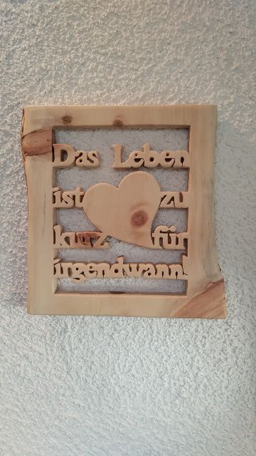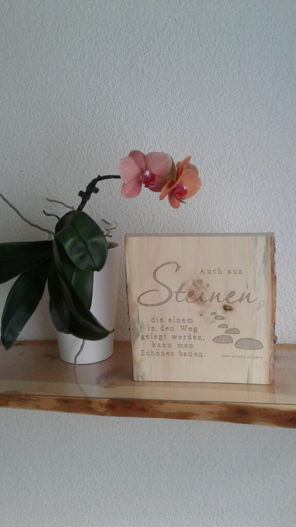Eine schöne Holztafel mit einem Spruch, tiefsinnig oder lustig, schmückt im Handumdrehen jeden Hauseingang, Flur und Wand. Statt der Tafel darf es auch einmal eine andere Geometrie sein.
